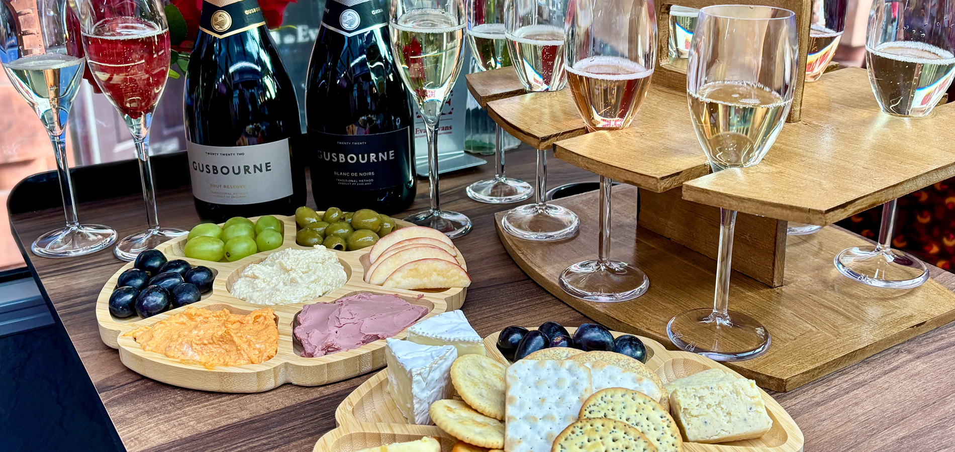 Along the way, enjoy a sumptuous wine tasting experience with Award Winning Gusbourne English sparkling wines perfectly paired with a delicious, curated selection of cheeses chosen to complement each wine, combining culture, luxurious flavour, and unforgettable views.