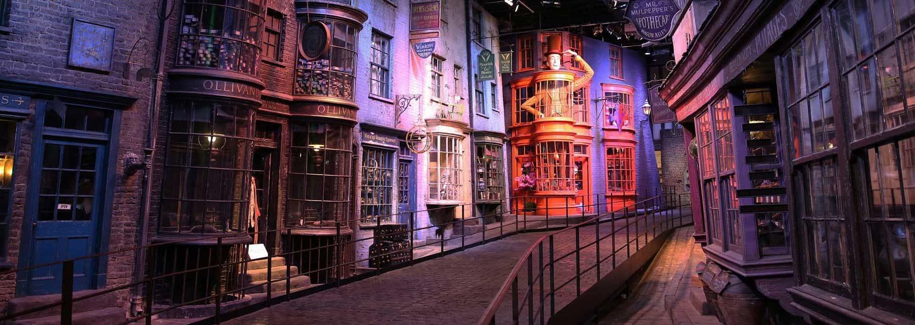 Diagon Alley Explore the cobblestoned alley and shopping area located behind the Leaky Cauldron pub. This iconic street is home to Gringotts Wizarding Bank™, Mr Mulpepper’s Apothecary and Ollivanders wand shop, where Harry’s wand famously chose him.