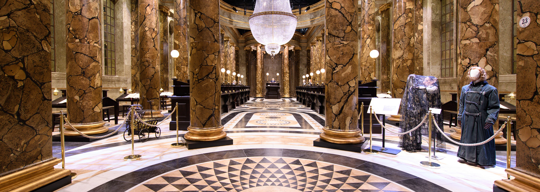 Famously run by Goblins, Gringotts Wizarding Bank™ is the only bank in the wizarding world. Discover the grand banking hall, adorned with three magnificent crystal chandeliers and lined by towering marble pillars finished with real brass leaves.