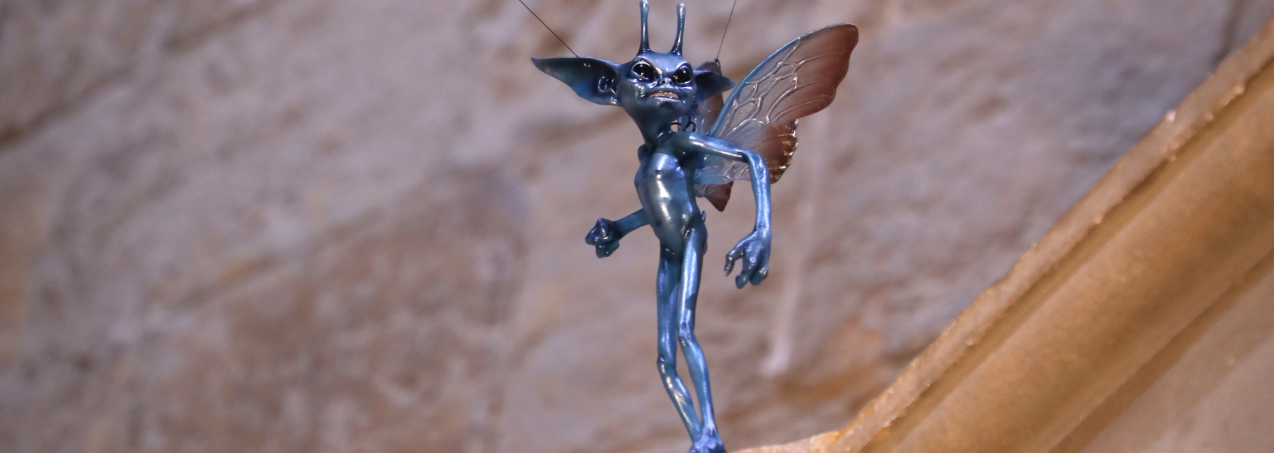 You can see the costumes and prosthetics belonging to Bogrod, Griphook, and many other goblin bankers and tellers. Their desks are furnished with inkwells, quills, ledgers, and piles of Galleons, Sickles, and Knuts.
